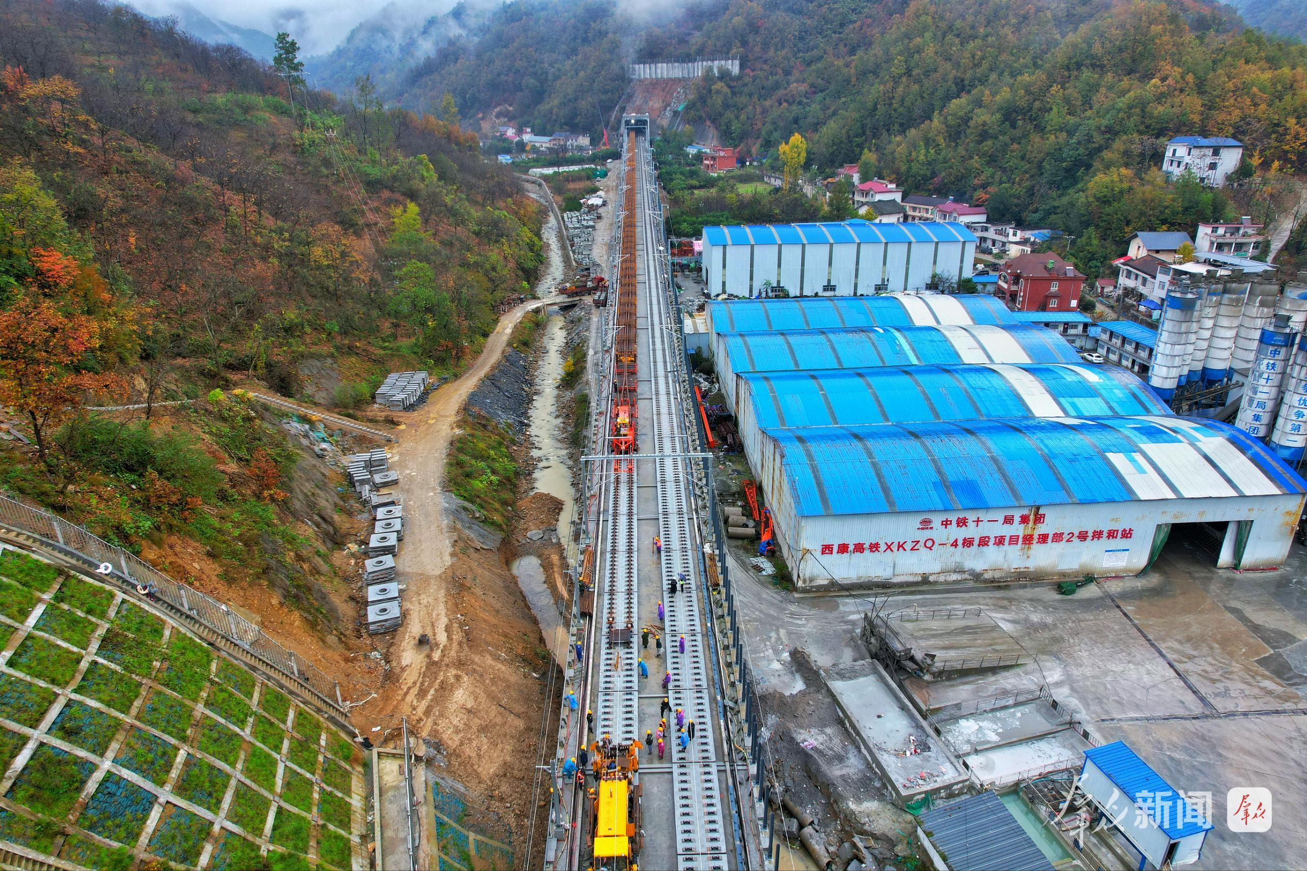 中铁一局、中铁十一局的建造者们冒雨作业,跟着最终一对500米长钢轨平稳铺设到位,西康高铁轨迹成功延伸至镇安西站,标志着项目铺轨工程获得阶段性打破。