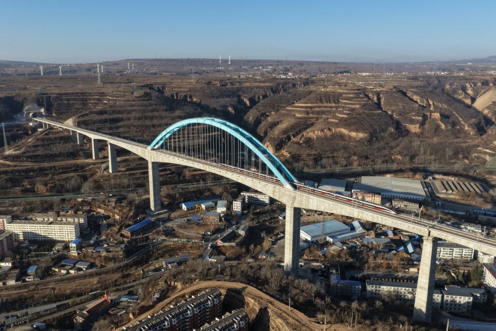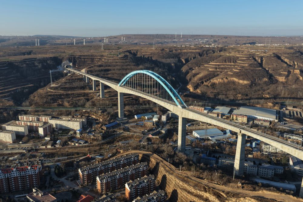 12月25日拍照的西延高铁王家河特大桥(无人机相片)。新华社记者 邢广利 摄
